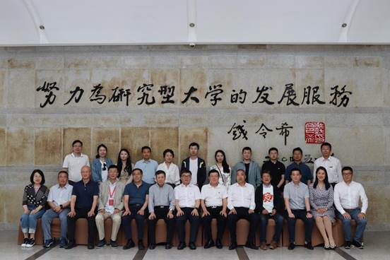25日中午,人文学院校友与在校教师代表于大工科技园合影。