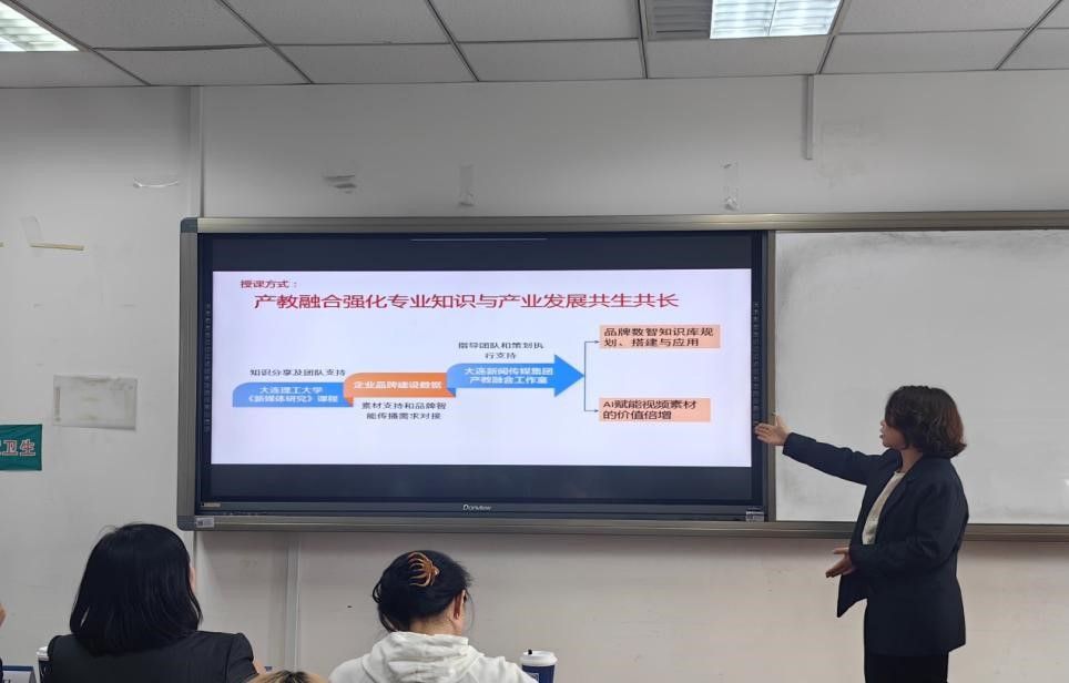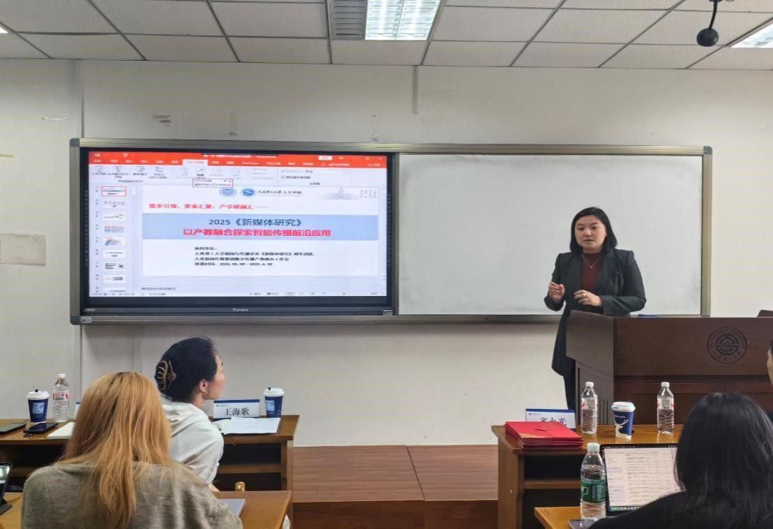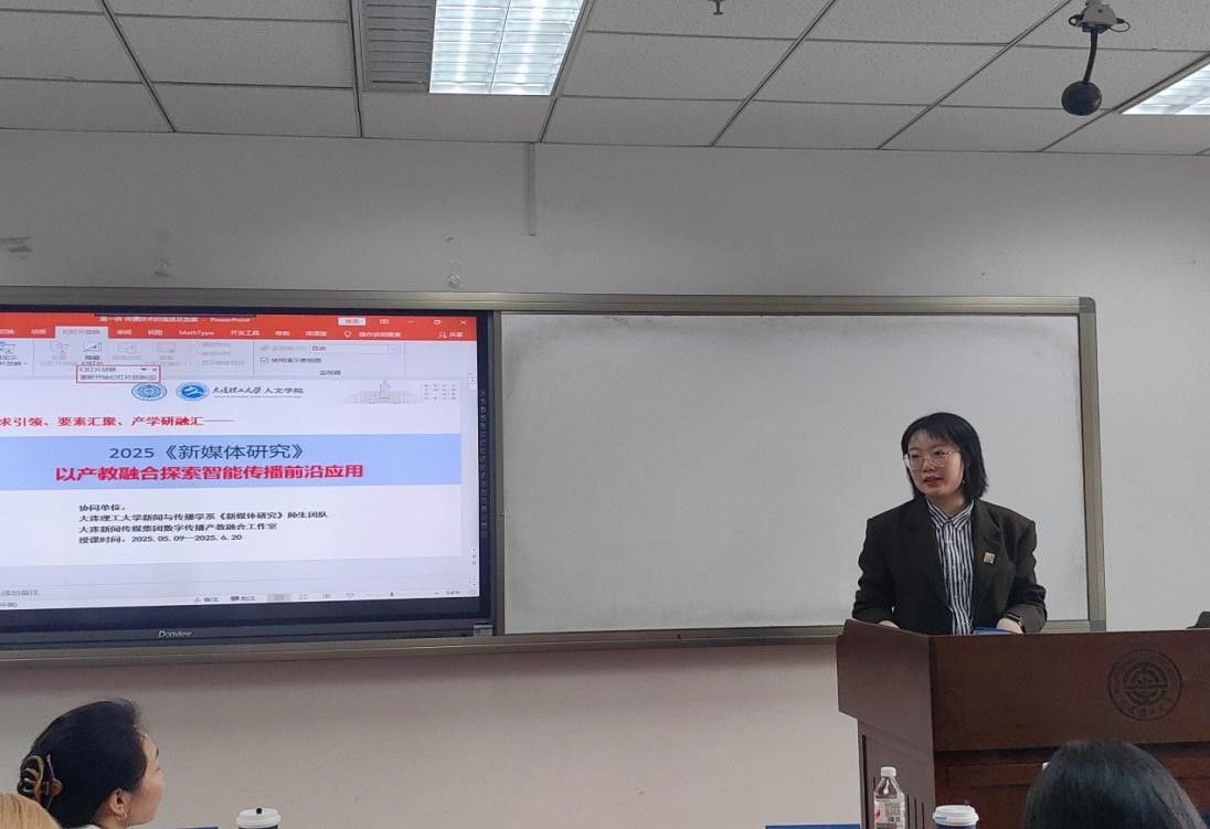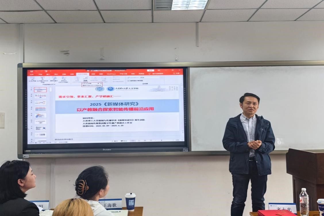 为加强人文学院新闻与传播学系“精品文科”建设,培育更能适应社会需求的复合型卓越新闻人才,2025年,新闻与传播学系持续加强以课带融,以融促研,以研强训的协同育人教学方式创新。今年的新闻与传播学专业硕士必修课程《新媒体研究》,采取产教融合教学方式,协同大连新闻传媒集团数字传播产教融合工作室及其合作企业,尝试通过导入真需求、真问题驱动专业知识和行业应用的多要素融合,带领同学们真正了解社会对新媒体应用的重要趋向。