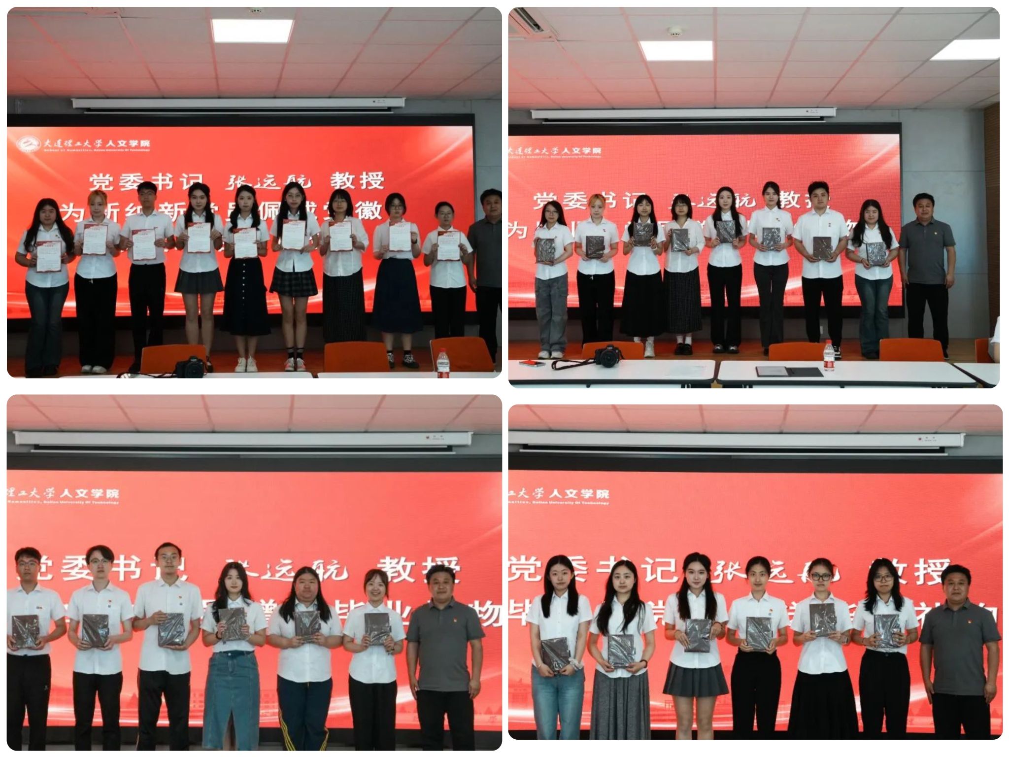 随后,张远航教授为纳新党员佩戴党徽、颁发政治生日贺卡,并向全体2025届本科毕业生党员赠送学院党委精心准备的毕业礼物,希望毕业生党员将在人文学院汲取的精神养分转化为服务国家、奉献社会的力量。