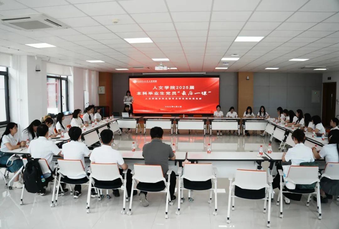 人文学院2025届本科毕业生党员“最后一课”是学院党委加强毕业生党员教育管理、强化党性修养的重要举措。全体毕业生党员必将牢记学院党委的殷切嘱托和师长们的谆谆教诲,将“最后一课”的精神力量内化于心、外化于行,以实际行动践行入党誓词,为实现中华民族伟大复兴的中国梦不懈奋斗。