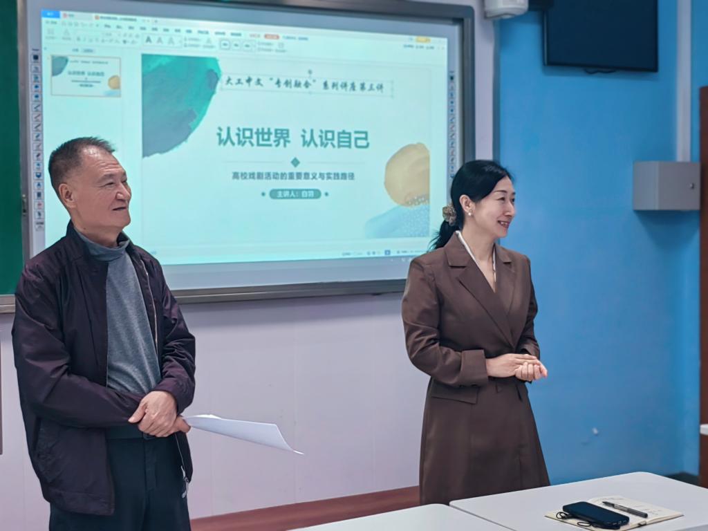 10月23日下午,大工中文“专创融合”系列讲座第三讲在第二教学馆111室举行,由著名导演、编剧及制片人白羽老师为我校师生带来题为“认识世界,认识自己——高校戏剧活动的重要意义与实践路径”的专题讲座。本次讲座由大工中文系主任王玉春主持。