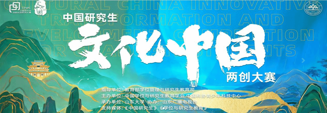 中国研究生“文化中国”两创大赛是由教育部学位管理与研究生教育司指导,中国学位与研究生教育学会、中国科协青少年科技中心主办的“中国研究生创新实践系列大赛”主题赛事之一,是系列大赛中首个文科主题的创新实践公益性赛事。大赛秉承“传承、发展、创造、创新”的办赛理念,坚持“赓续中华文脉、坚定文化自信”的办赛宗旨,鼓励研究生投身到中华优秀传统文化“两创”的创新实践中,引导广大研究生深学细悟习近平文化思想,强化传承弘扬中华优秀传统文化的使命担当,激荡起文化“两创”的创新热潮,为国家、社会发现、培养、输送文化领域“两创”型人才。