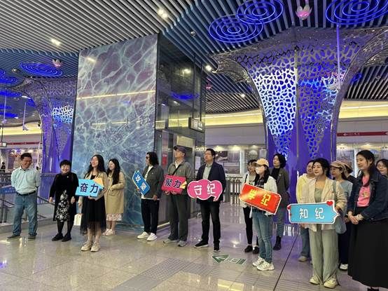 为深入学习贯彻习近平总书记关于党纪学习教育的重要指示精神,加强党员廉洁自律教育,提高党员党性修养,5月23日上午,人文学院新闻系教师党支部、哲学系师生纵向党支部以及哲学系博士生导师纵向(第二)党支部共同组织了一场别开生面的党纪学习教育活动。本次活动以大连市廉洁文化主题地铁站为学习阵地,通过实地参观、文化体验、知识竞答等多种形式,让党员们深刻感受廉洁文化的魅力,共同筑牢廉洁自律的思想防线。